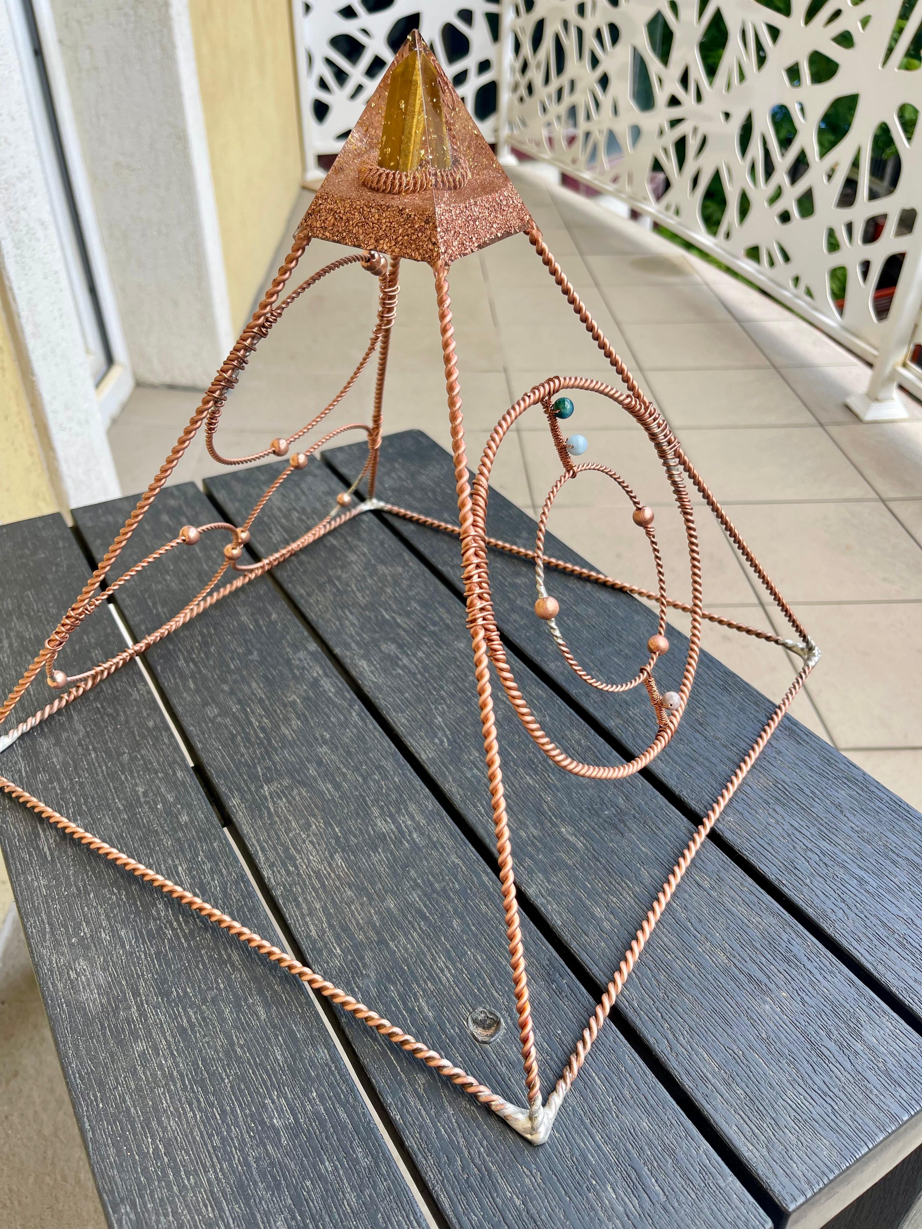 Creată cu intenție clară și respect pentru energiile subtile, această piramidă din cupru este mai mult decât o formă geometrică sacră – este un instrument viu de armonizare, protecție și activare a conștiinței. Structura sa acționează ca un transmițător între planurile energetice, susținând atât spațiul în care este amplasată, cât și ființa care interacționează cu ea.