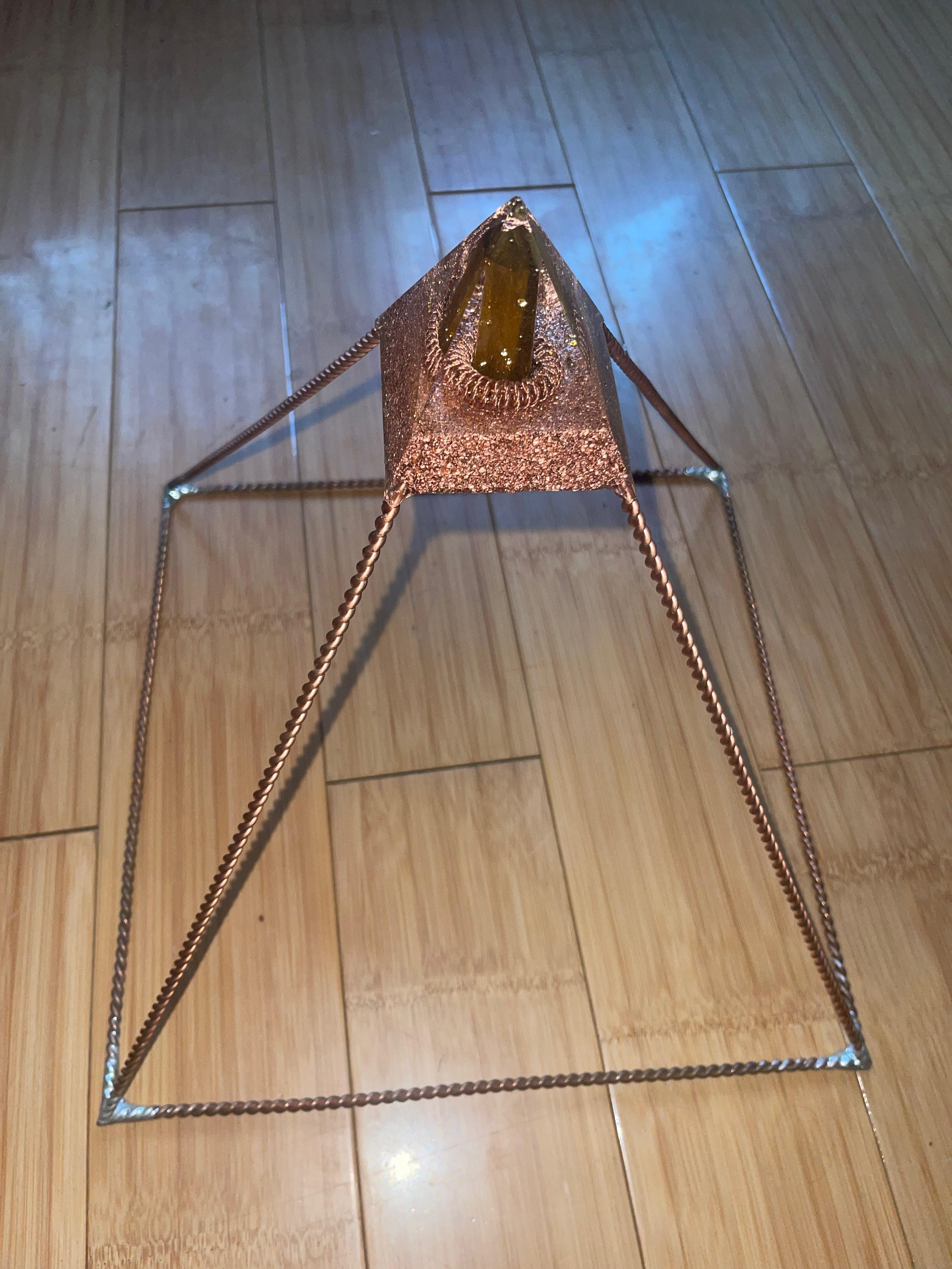 Creată cu intenție și respect pentru energiile subtile, această piramidă din cupru este mai mult decât o structură – este un instrument viu de armonizare și protecție. Forma sa geometrică sacră acționează ca un transmițător între planurile energetice, susținând activarea spațiului și a ființei.