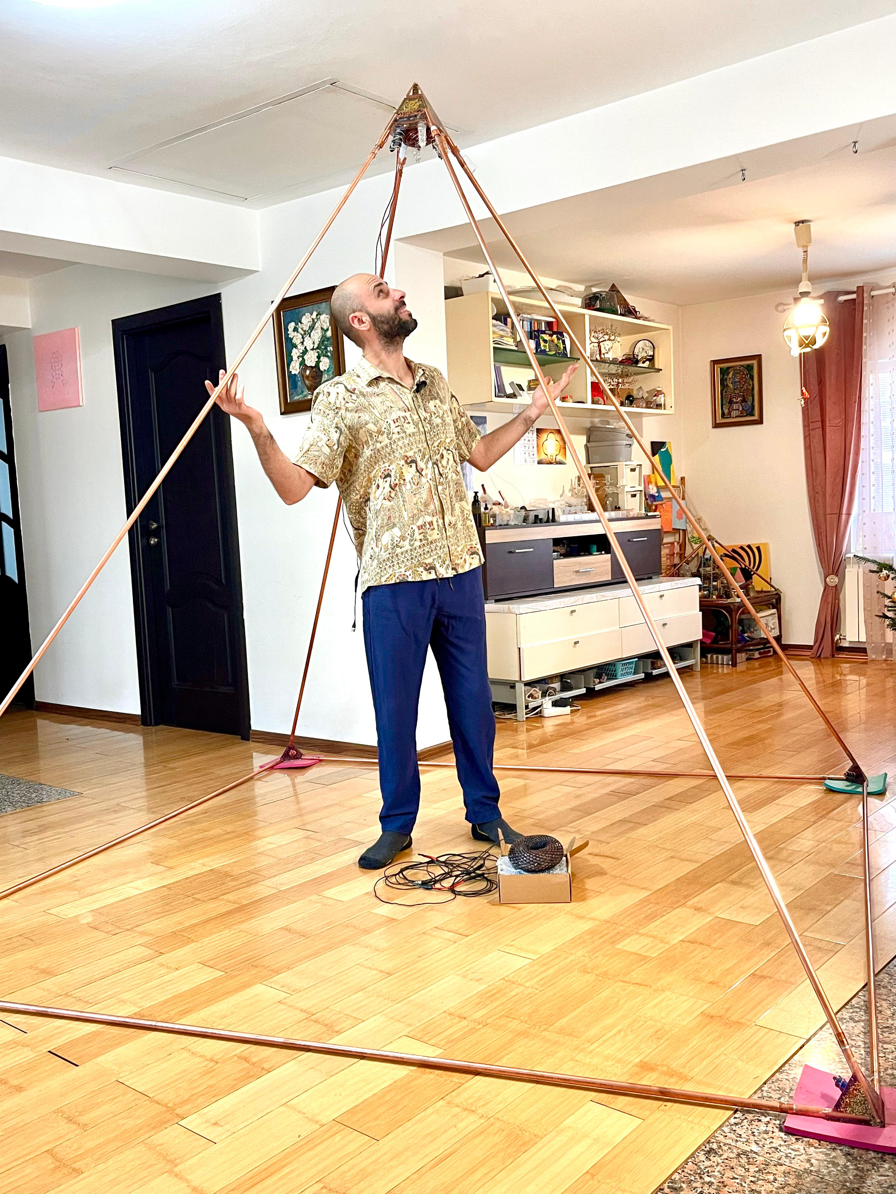 Această piramidă de meditație nu este doar un obiect, ci un templu viu, creat pentru armonizare profundă, regenerare și amplificarea conștiinței. Construită din țevi de cupru pur și cristale atent alese, piramida devine un spațiu energetic sacru, unde corpul, mintea și sufletul se reconectează cu energia universală.