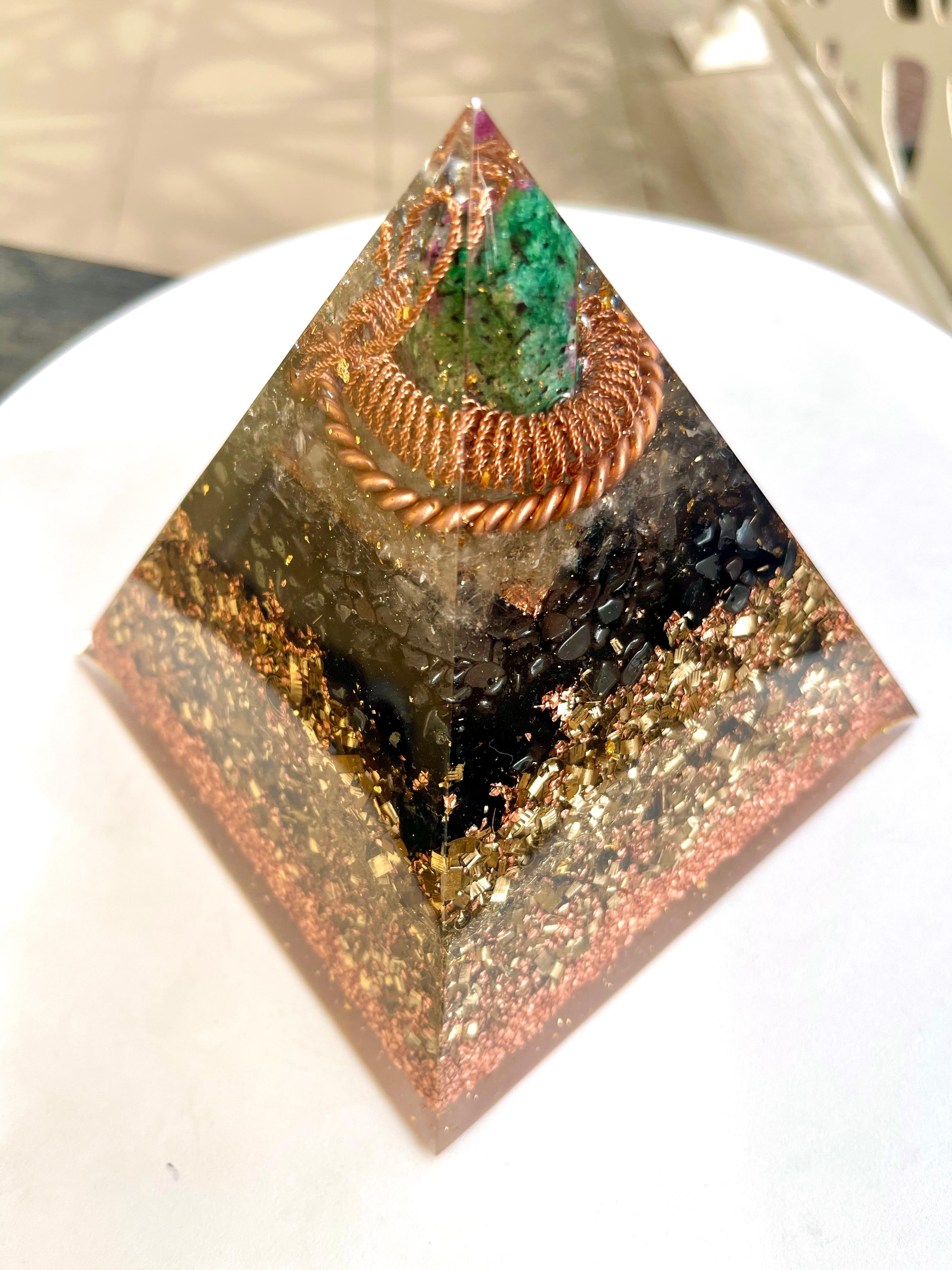 Acest orgon este o sinergie între geometrii sacre, tehnologii avansate și cristale cu vibrație înaltă, având rolul de a armoniza energiile din jurul tău, a susține regenerarea interioară și a-ți proteja câmpul energetic. Are o inaltime de 15 cm si o greutate de aproximativ 2 kg.
