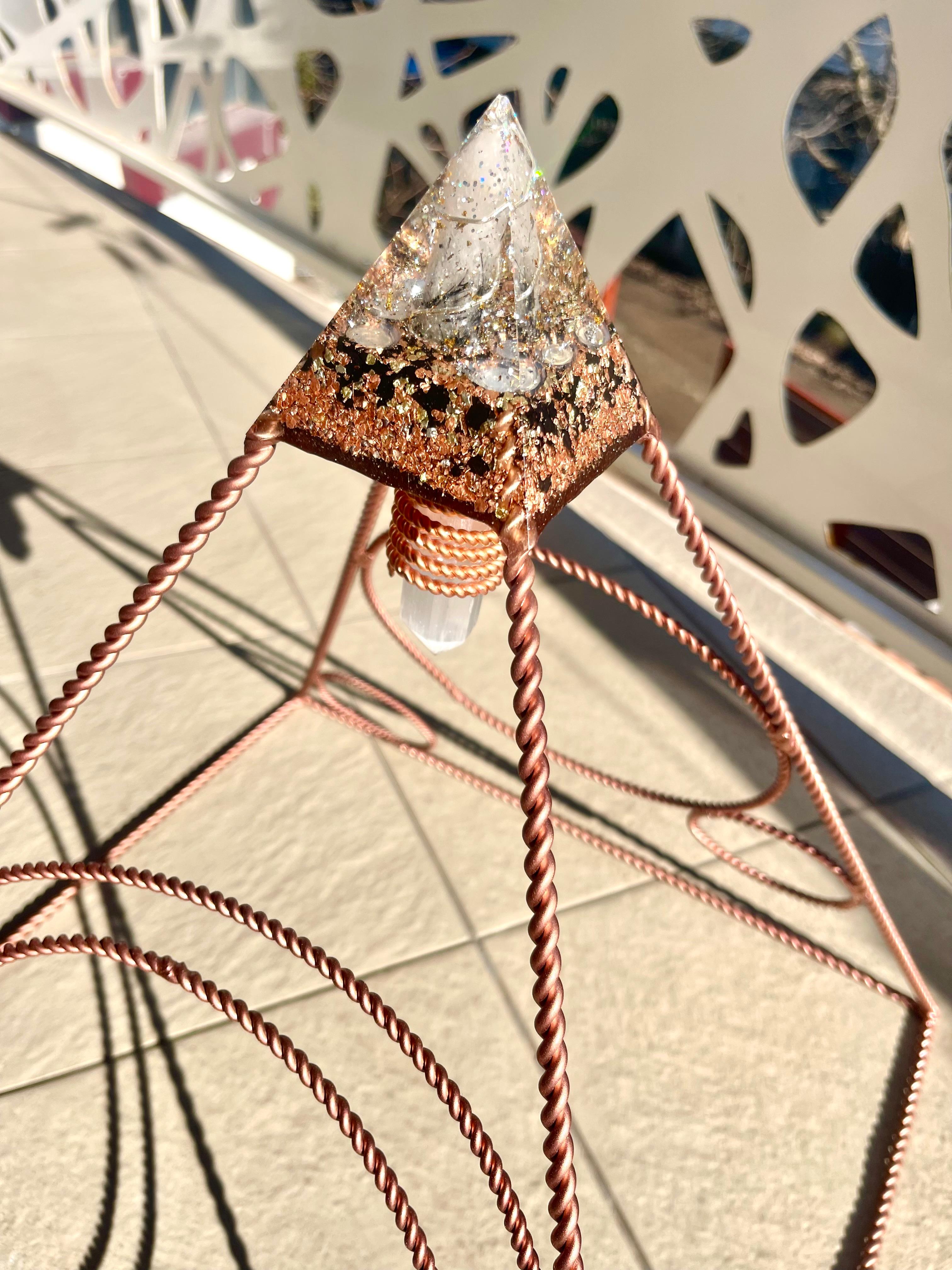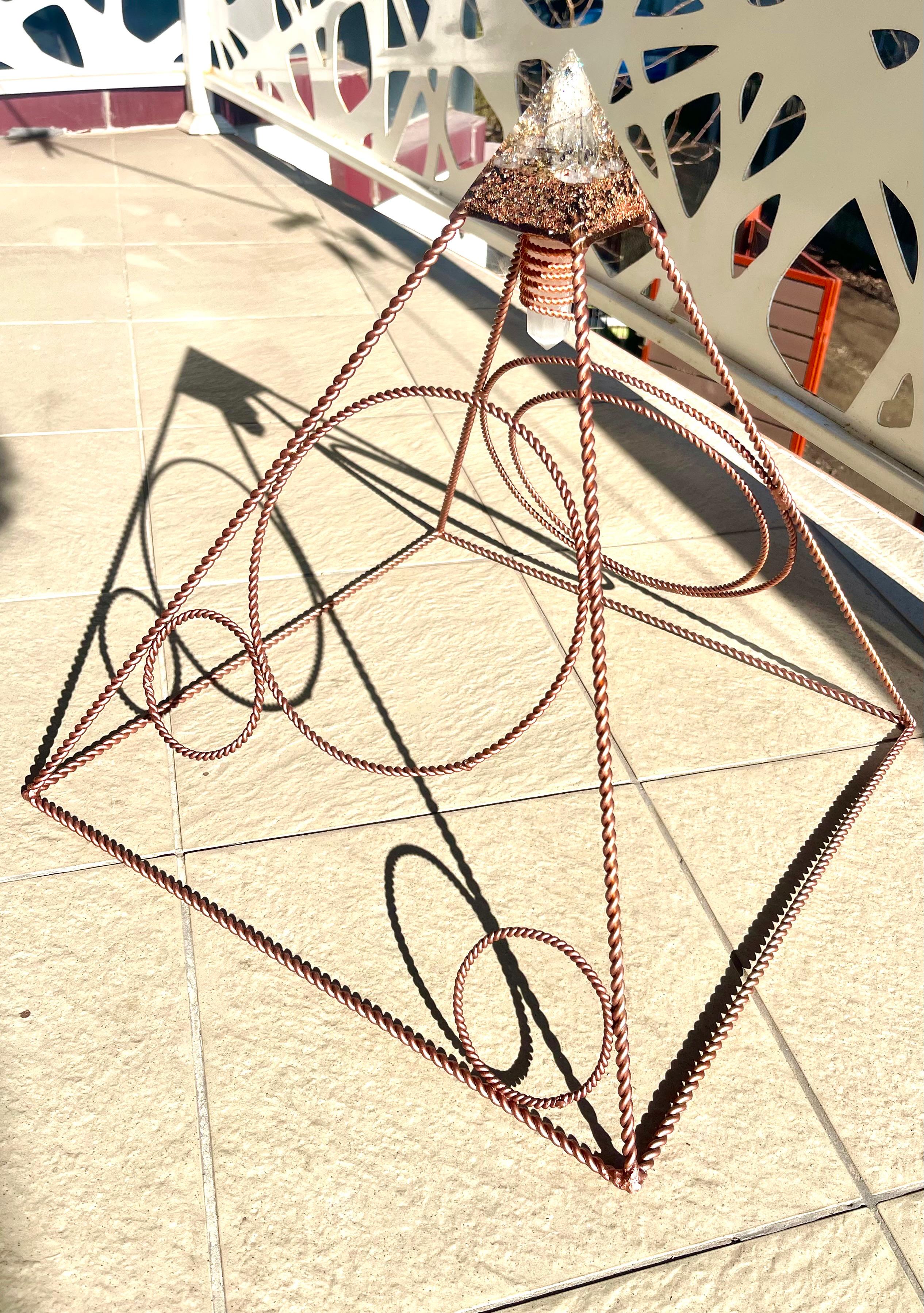 Această piramidă din cupru de aproximativ 40 cm înălțime este construită ca o arhitectură de rezonanță între cer și pământ. Este în același timp un obiect funcțional și simbolic — un spațiu activ în care energia se organizează, se clarifică și se stabilizează.