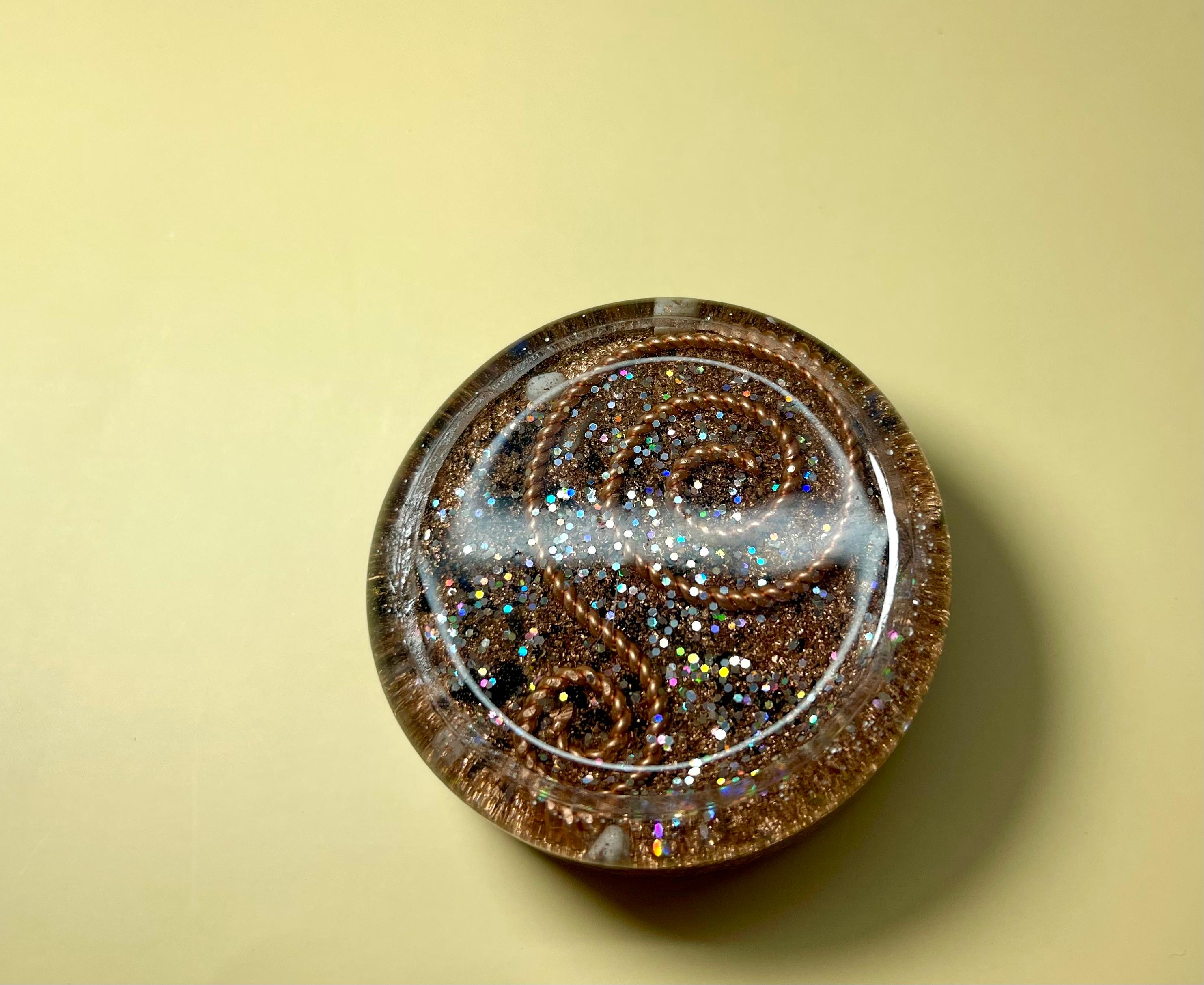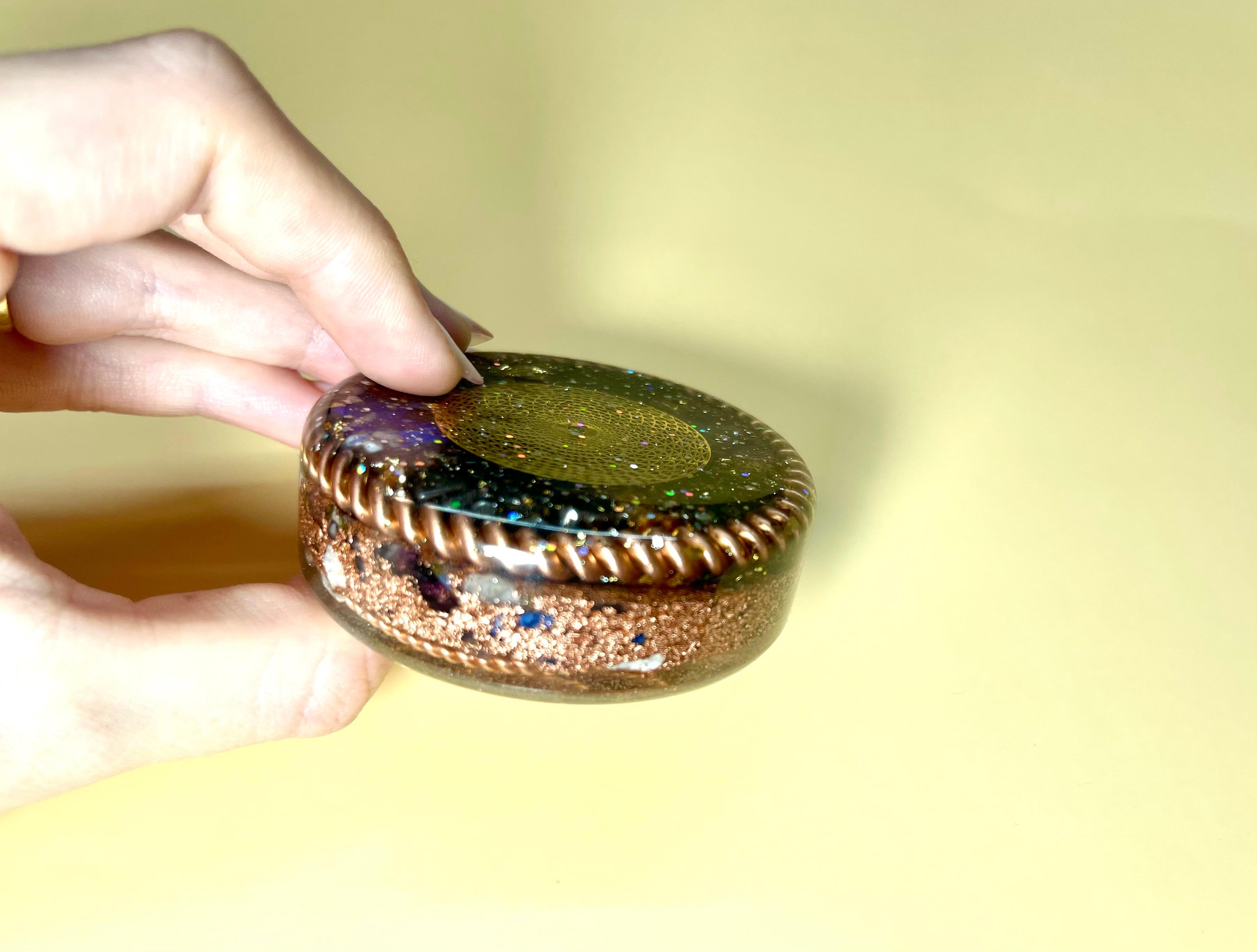 • 50% anorganic – cupru, pulberi metalice, cristale și inserții aurii care filtrează și amplifică fluxul energetic